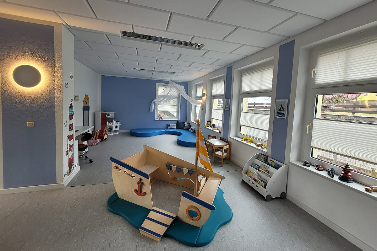 Unsere Krippe bietet den Jüngsten einen geschützten Raum und gewährleistet für zwölf Kinder eine liebevolle Betreuung.